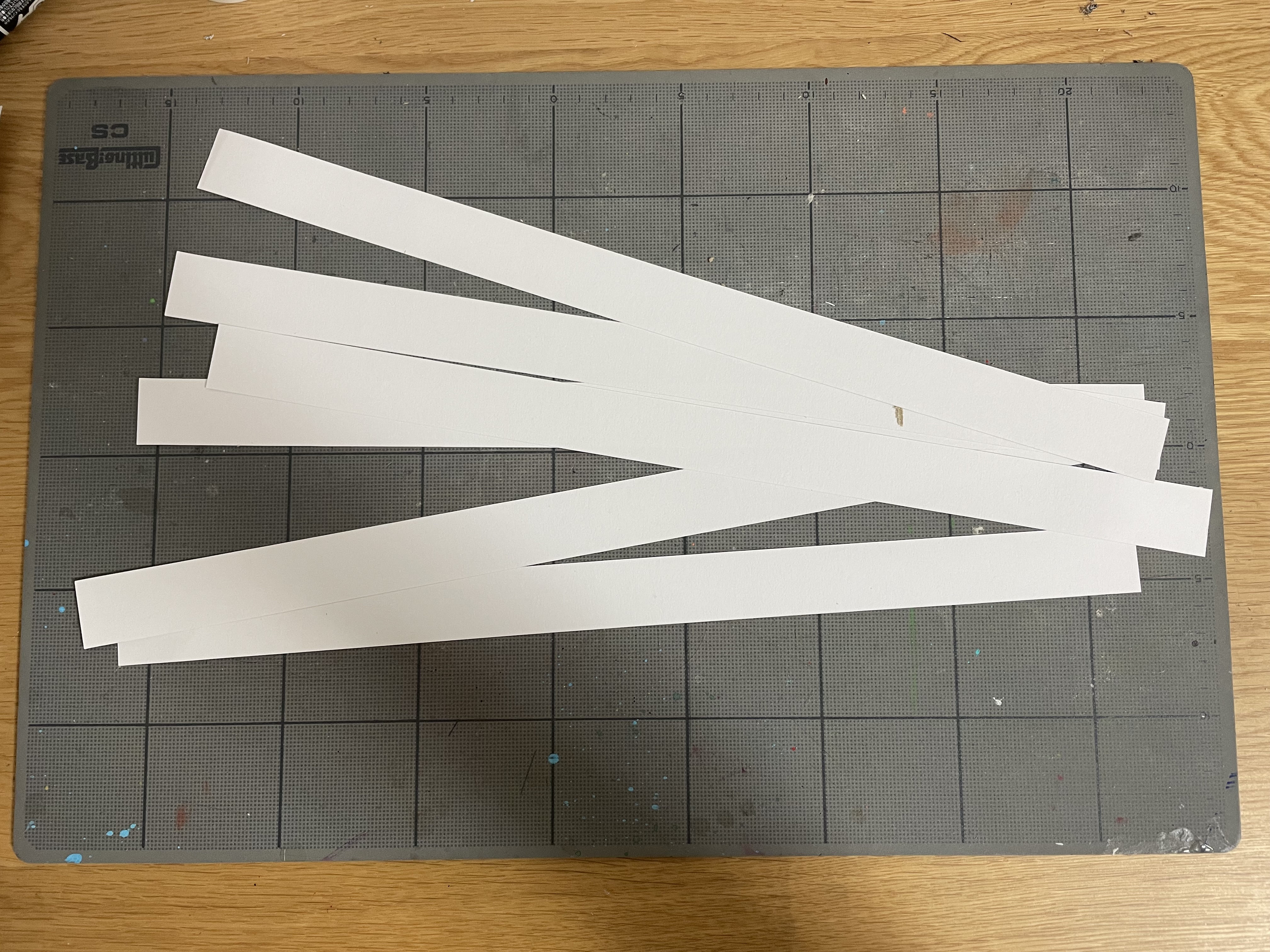 4.細長く切った画用紙で窓から覗かせたいモチーフをつくります。
