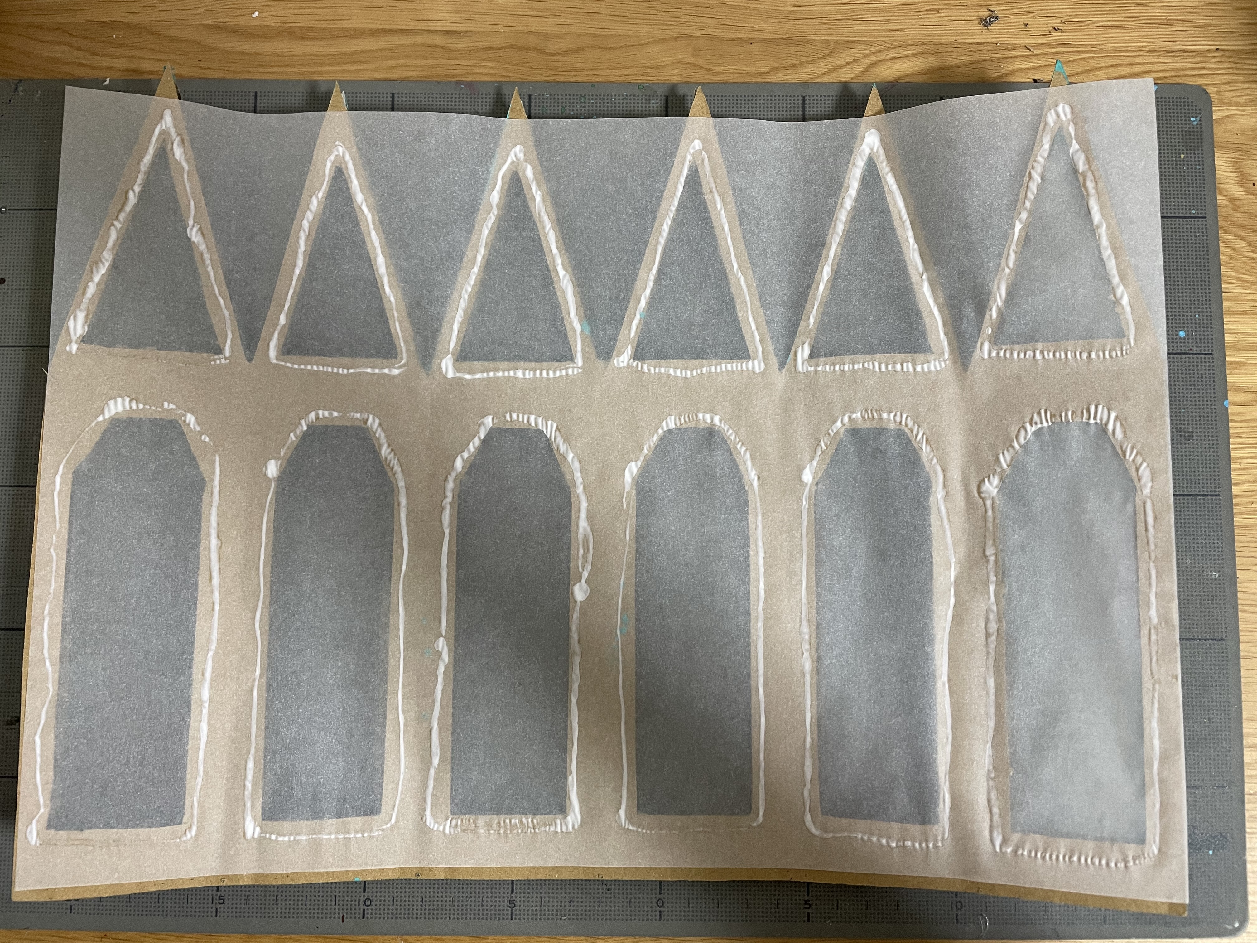 窓枠の周りにボンドをつけてトレーシングペーパーを接着します。