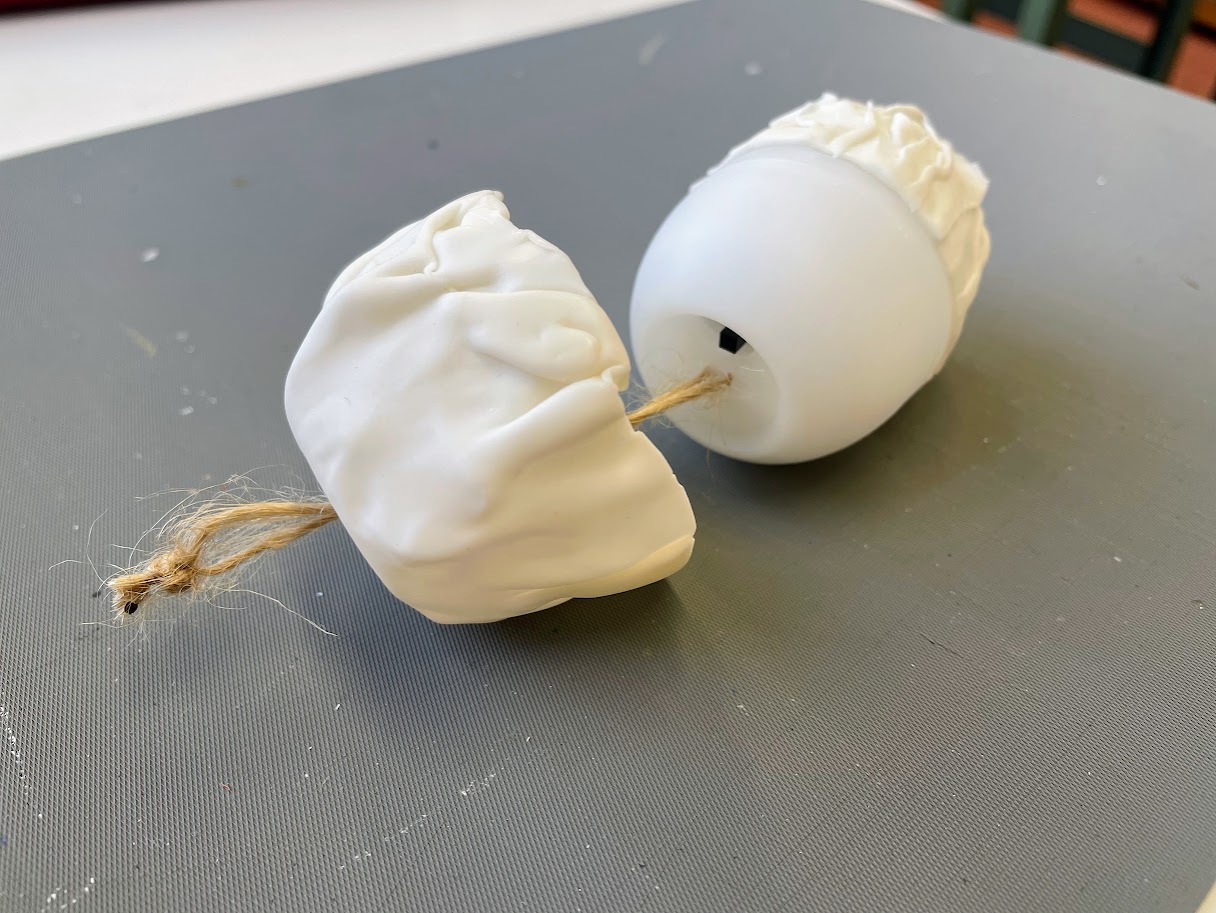 取り外しができるようにつくります。そのためまずはクラゲのかさの型にするためにエッグライトをさかさまの状態で固定できるようにします。