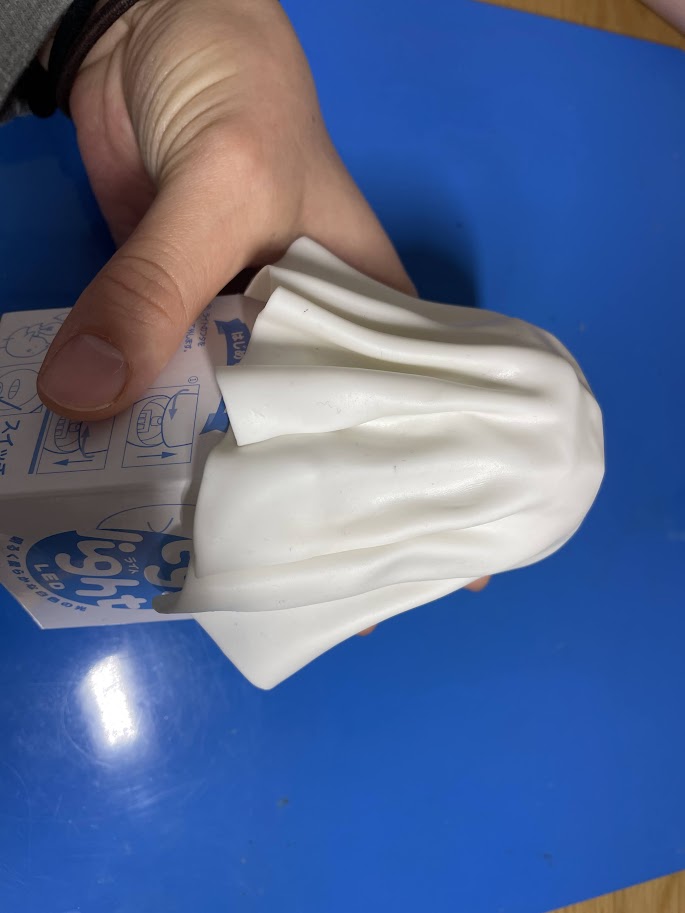 ⑤①~③で用意したエッグライトの型に④のクリアクレイを被せ、ひだを調整します。