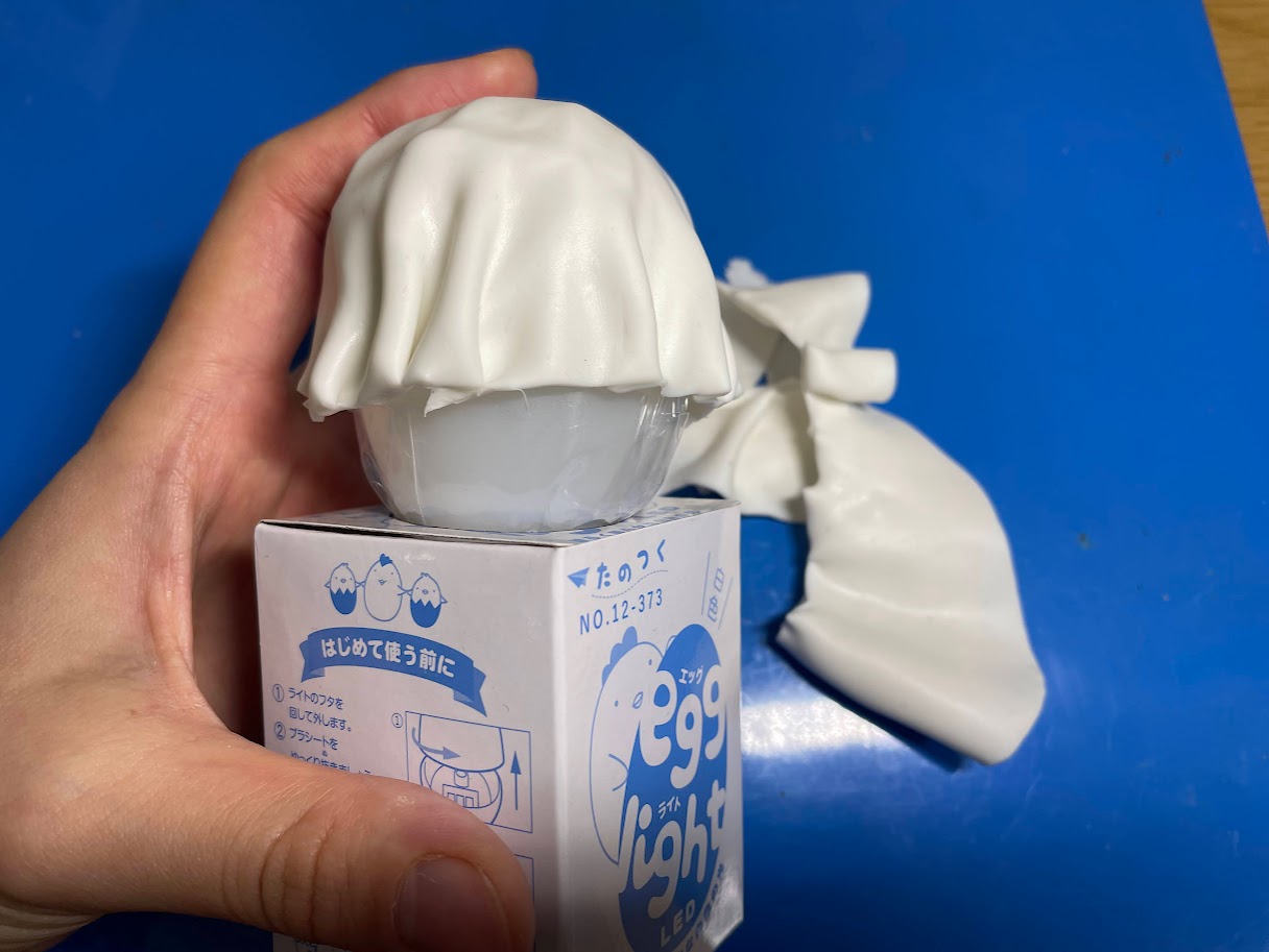 ②エッグライトが入っていたビニール袋をエッグライトの底が上になるようにかぶせます。