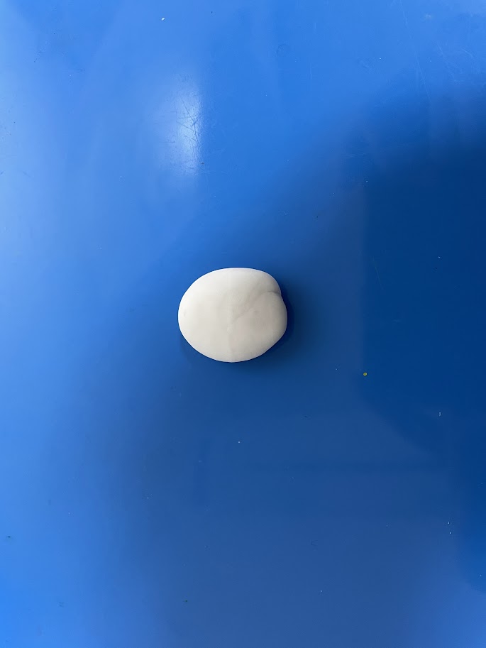 ①直径1~2cmサイズで丸めたクリアクレイを少しつぶします。