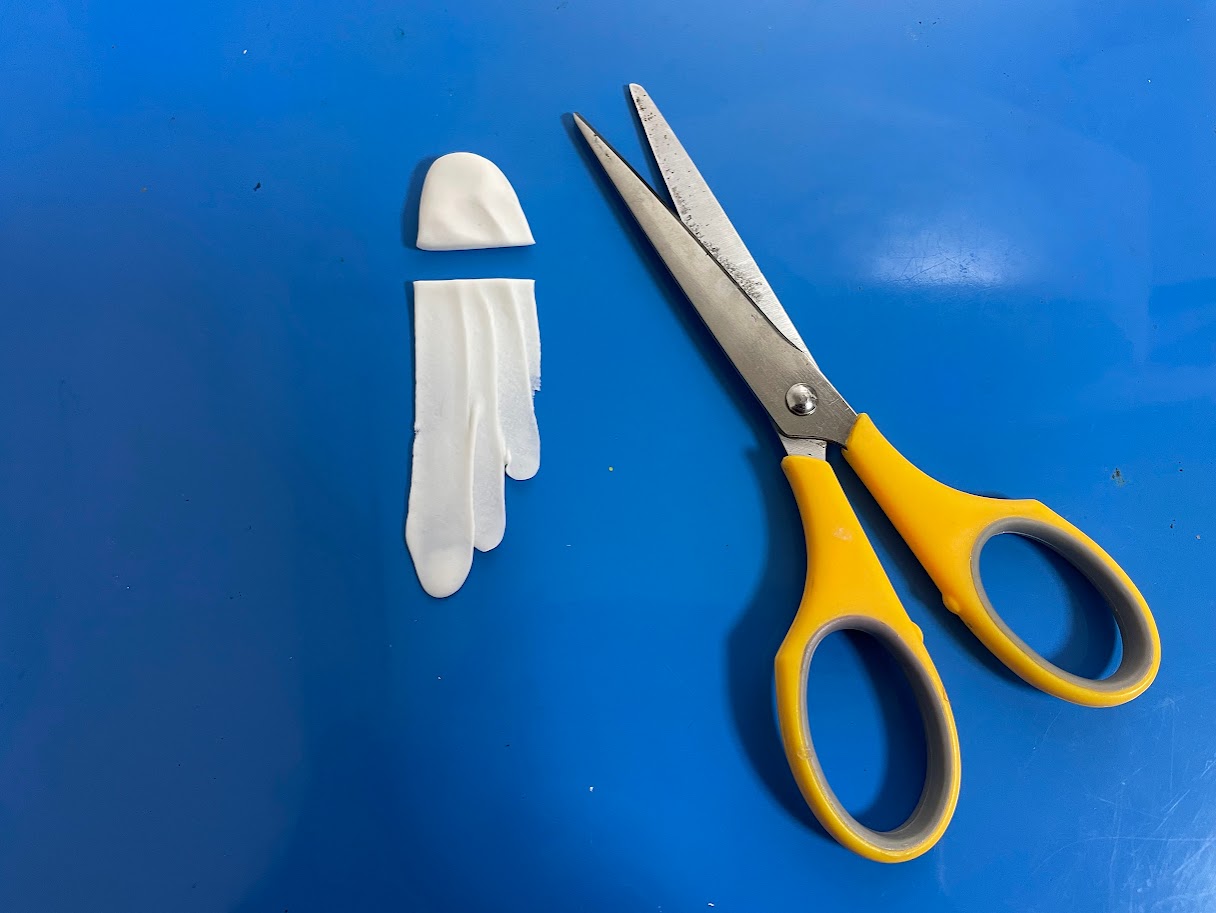 ③粘土の厚みが残っている上の部分はハサミでカットします。