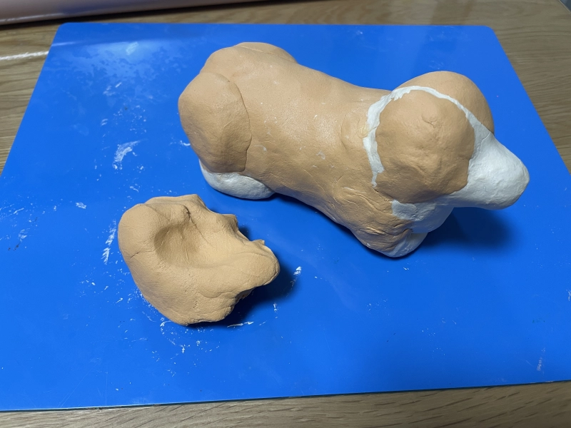 パーツをつける時はベースも湿らせたりなど制作中は粘土の水分が飛ばないように意識すると作業しやすいです。