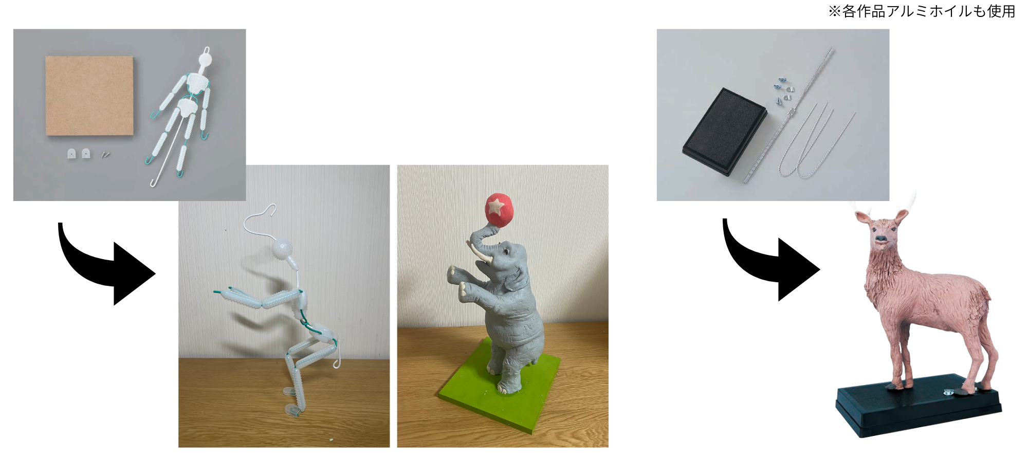 石粉粘土の粘土同士を馴染ませたり乾燥後に彫刻するなど、細かい造形ができるところを掛け合わせた