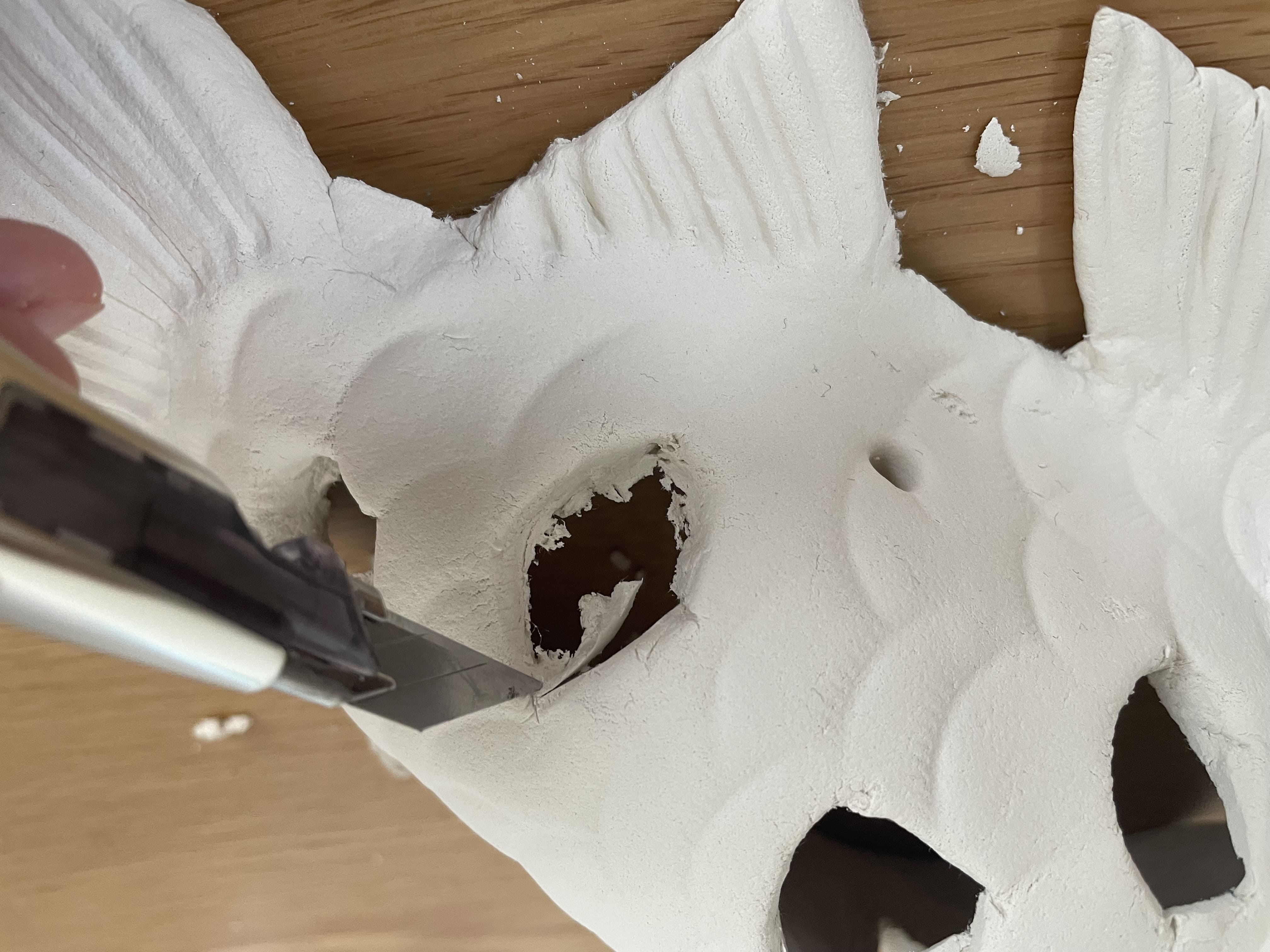 光が見えるように鱗の一部や目の部分をはカッターでくり抜きます。