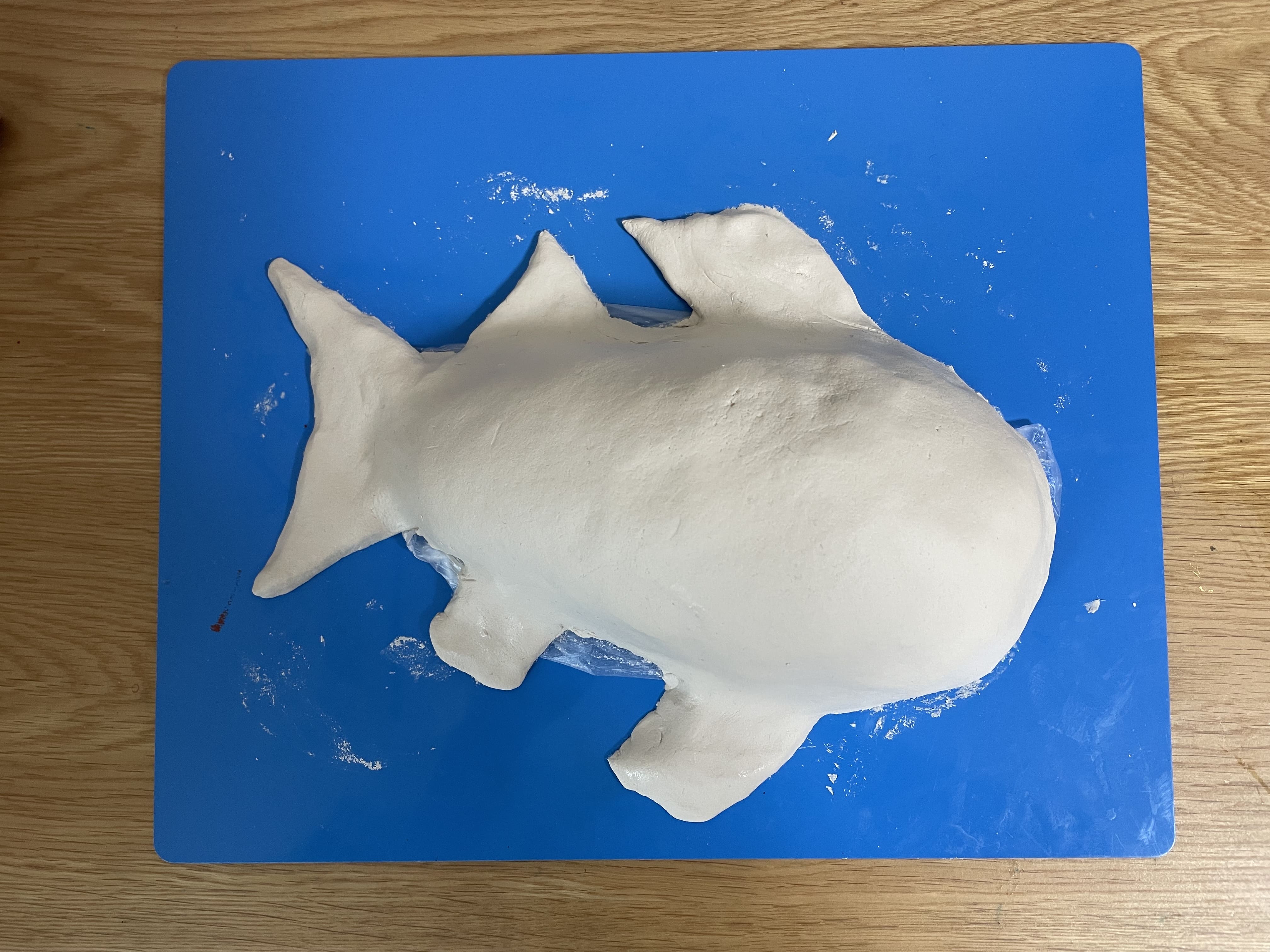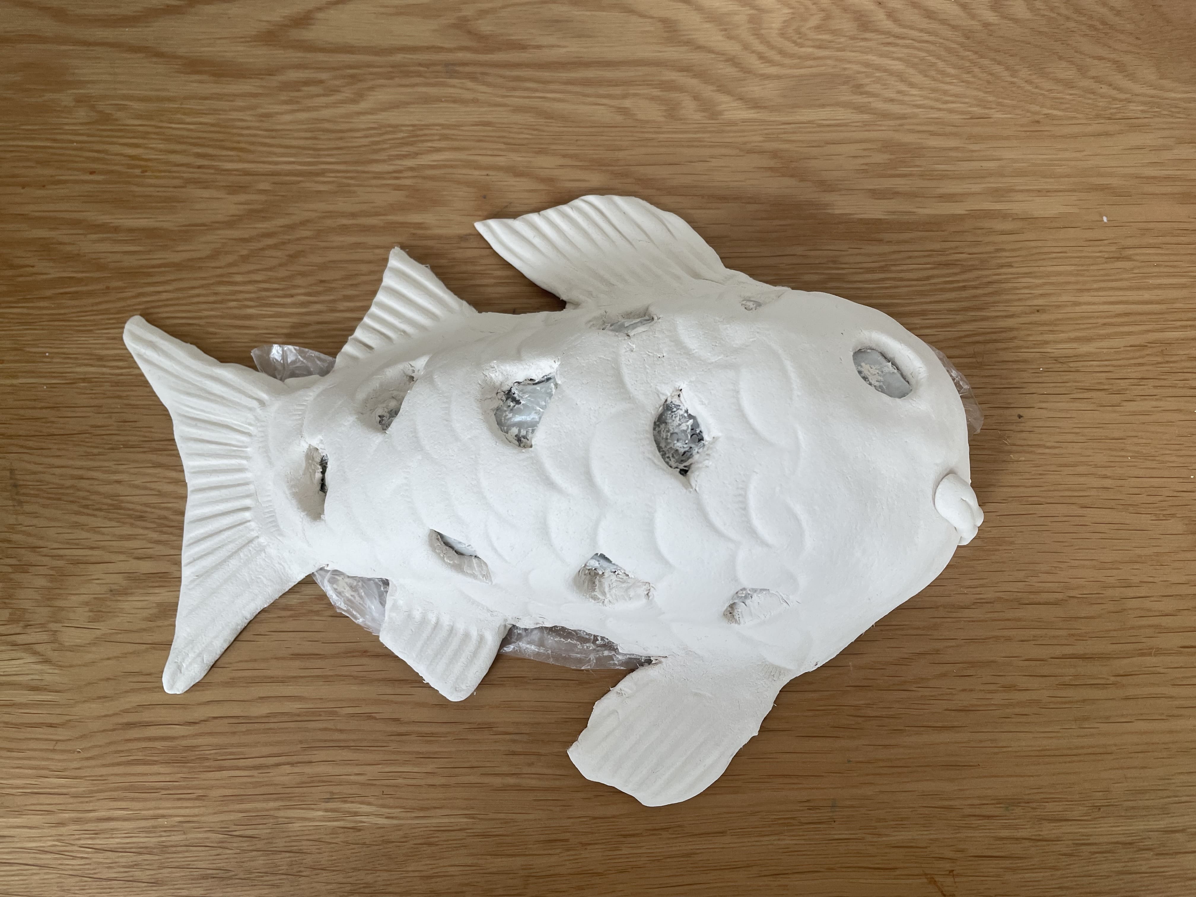 まずは魚の型を作ります。まるめた新聞紙をビニール袋にいれて作りました。