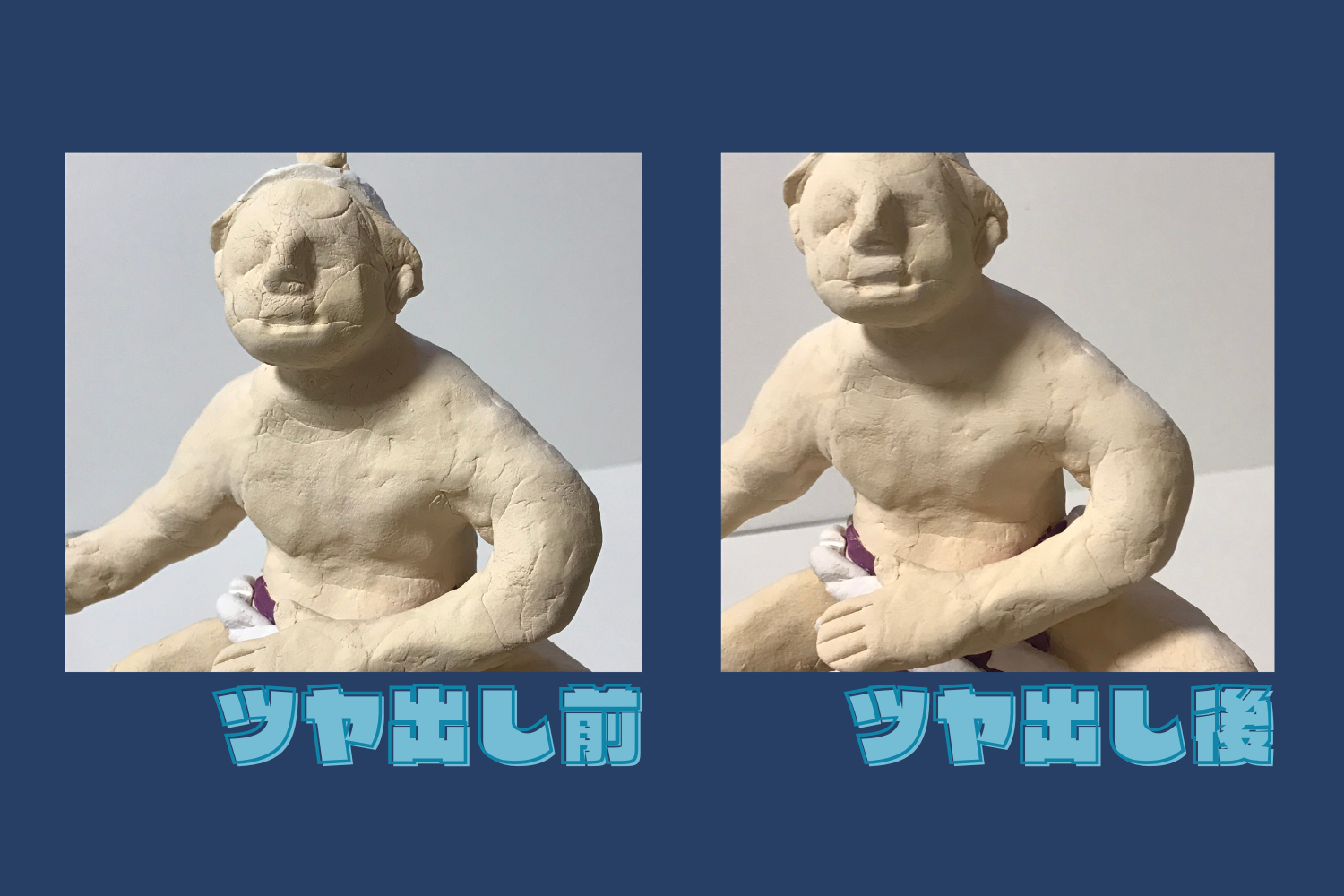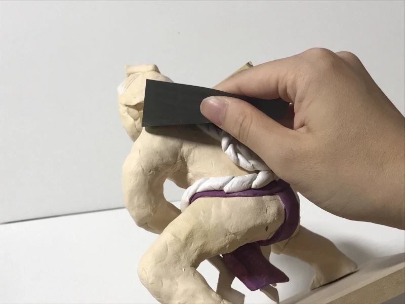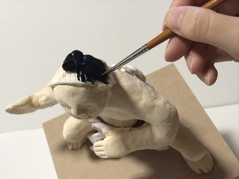 残りの粘土で髪の毛やまわしを作っていきます。