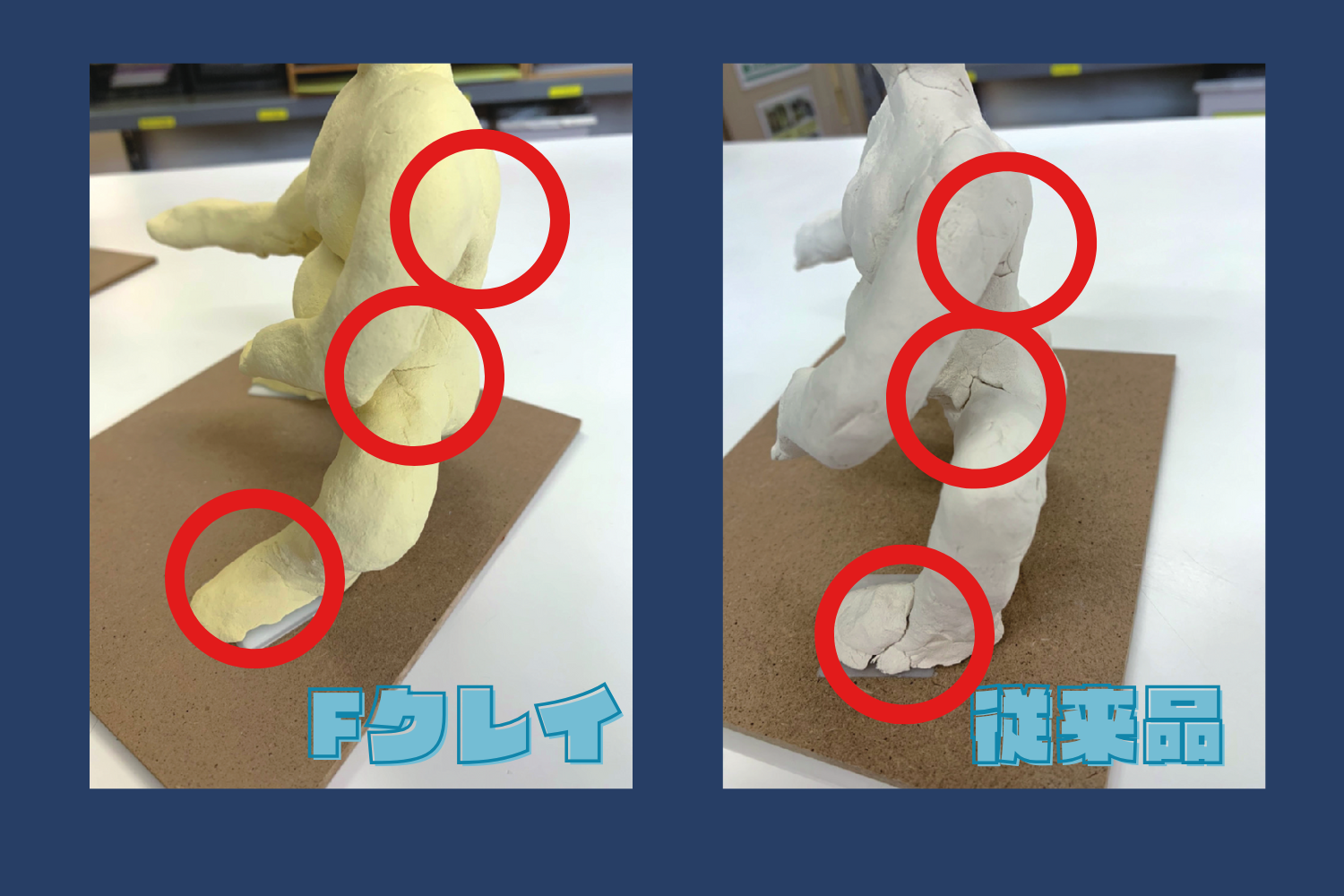Fクレイは従来の石粉粘土に比べてひび割れしにくい!!