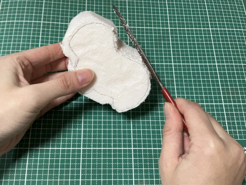 スタイロフォームはカッターや棒やすりで簡単に形を加工できる扱いやすい発泡素材です。