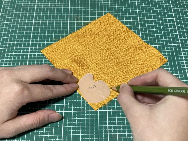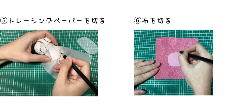 ⑥トレーシングペーパーよりも4mmほど大きく布をカットします。