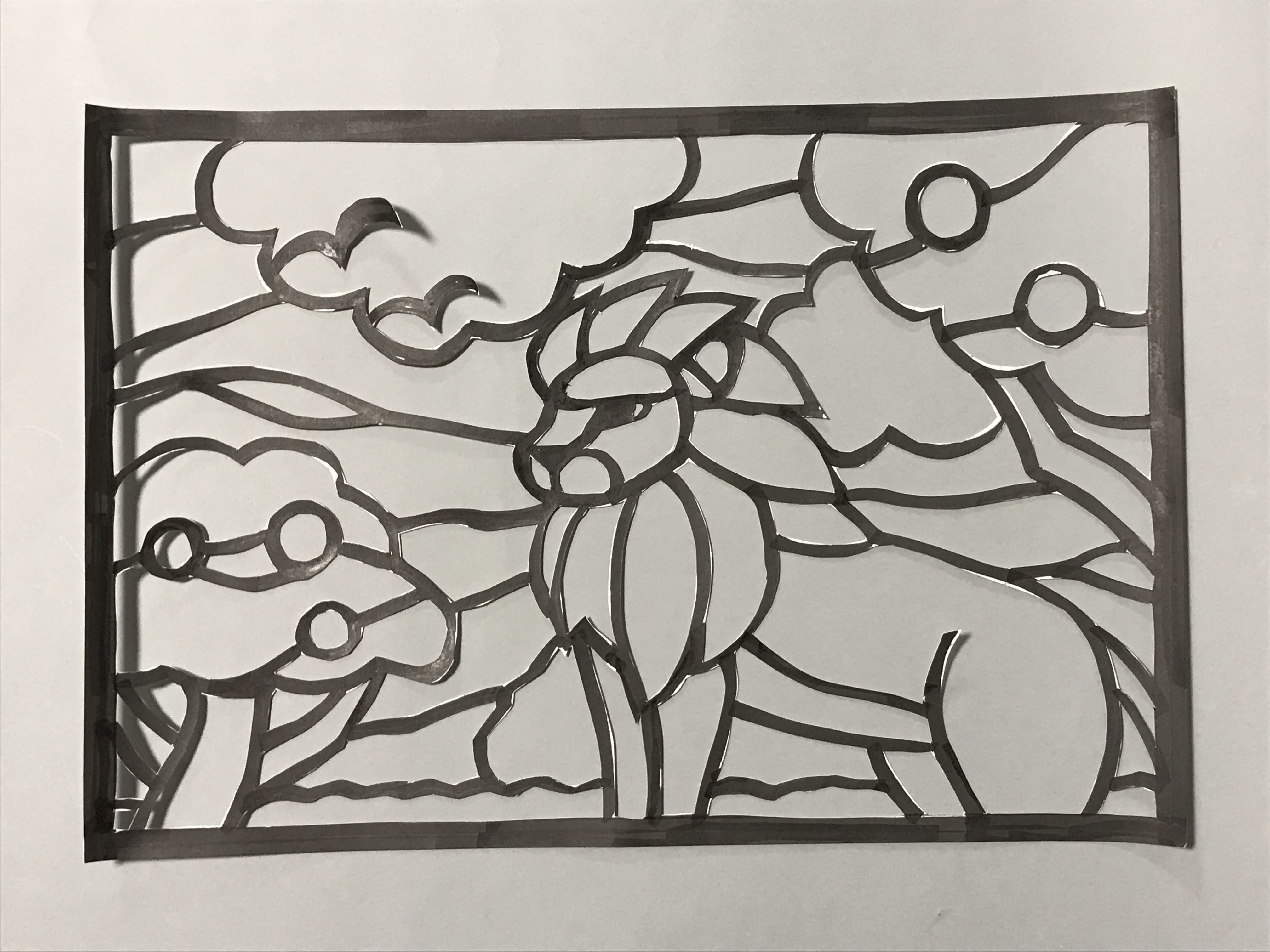 ここでなぞった太い線が、作品の完成時にも黒く残るフチの部分になります。