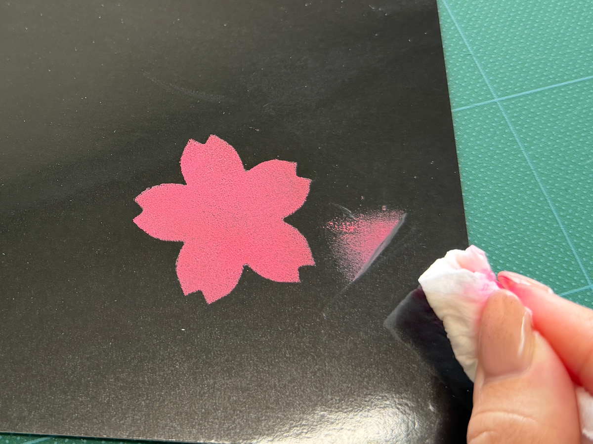 ステンシルは、黒色つやボール紙を使っているので、もし失敗しても