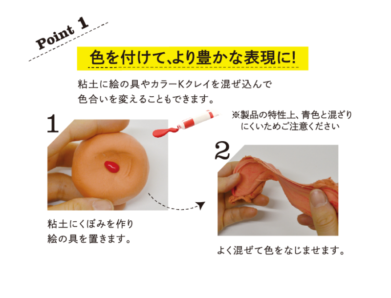 Kクレイシリーズの粘土なので、手が汚れず軽くてきめ細やかでよく伸びる、造形しやすい粘土です。
