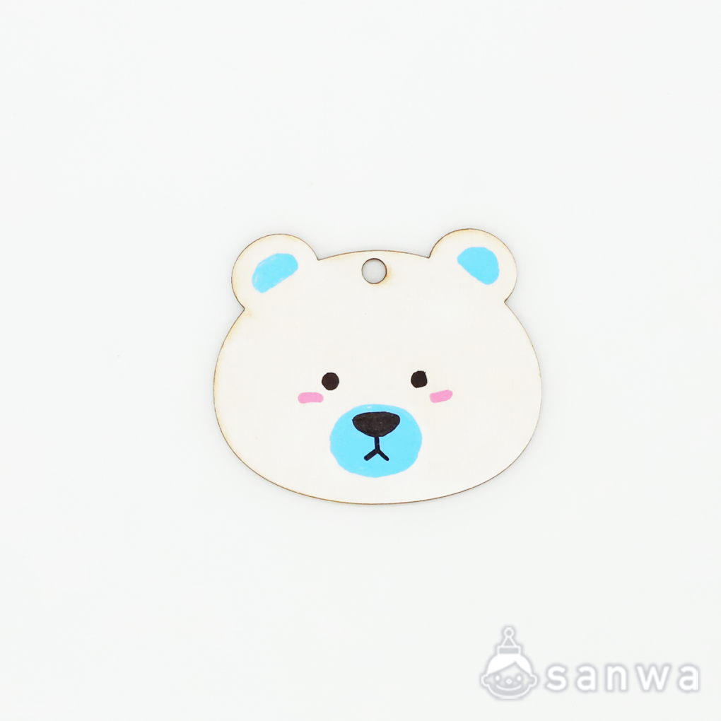 『木のガーランドシリーズ』と『木のネックレスシリーズ』と『木のバッジ7cmシリーズ』と『木のマグネット7cmシリーズ』は、絵の具やマーカーなど、お好みの画材で着色して、手軽にオリジナルバッジが作れるキットです。