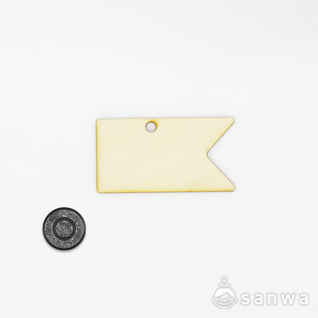 『木のガーランドシリーズ』と『木のネックレスシリーズ』と『木のバッジ7cmシリーズ』と『木のマグネット7cmシリーズ』は、絵の具やマーカーなど、お好みの画材で着色して、手軽にオリジナルバッジが作れるキットです。