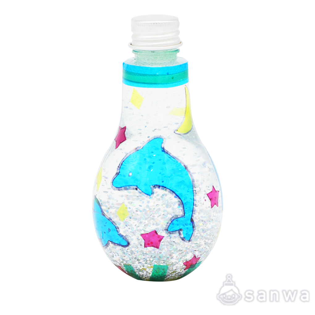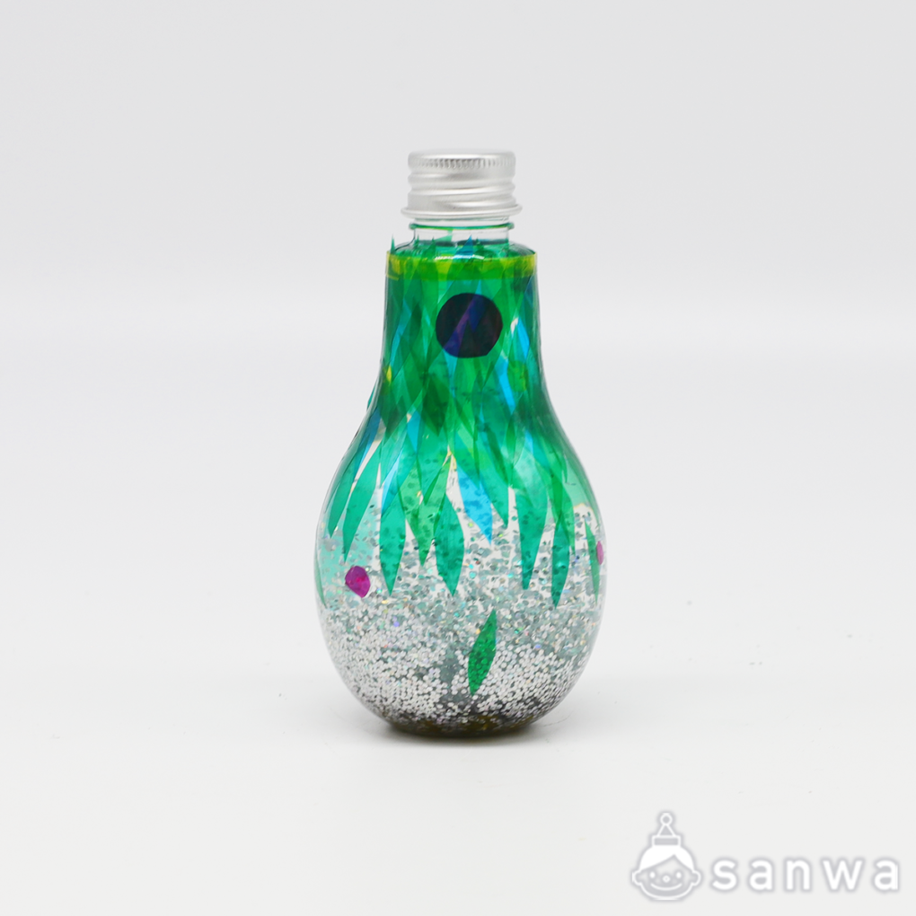 可愛い電球型のプラスチック瓶にラメとフロストグラスを入れ、キラキラ舞っている世界を作ってみませんか?