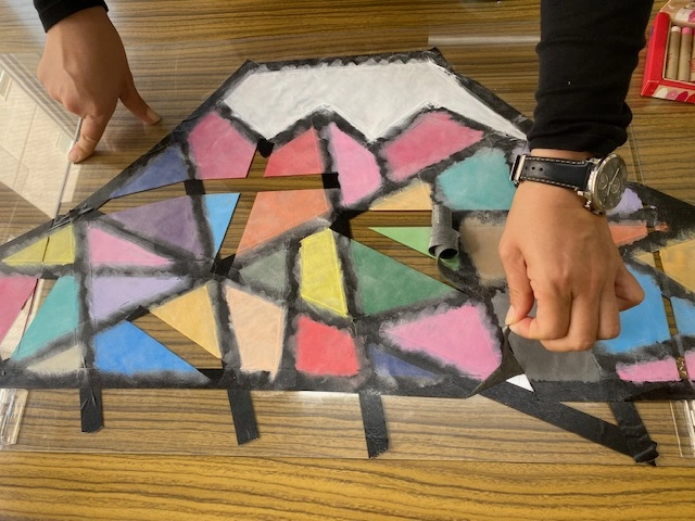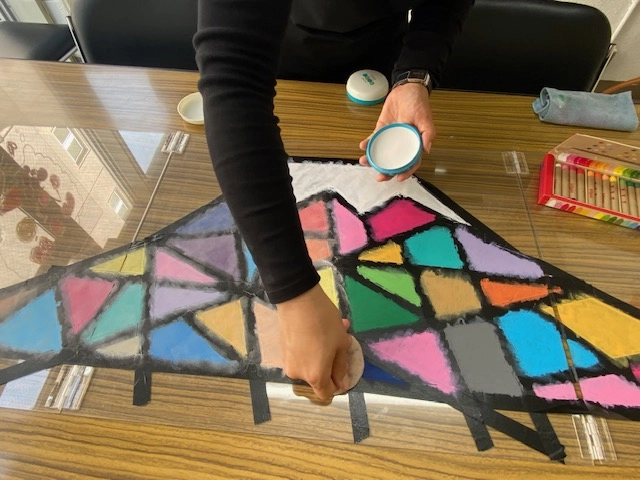 マスキングテープの間をキットパスで塗ります。 配色は自由に!!!