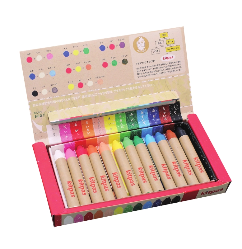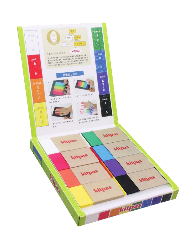 ホワイトボード、ガラス、アクリル板、プラスチックなどの つるつるした面に描けて、濡れた布で簡単に消せる画材です。 材質:ライスワックス・顔料・その他 細かい表現が描きやすいミディアムと 幅が広く大きな面も塗りつぶしやすいブロックの2タイプがあります。