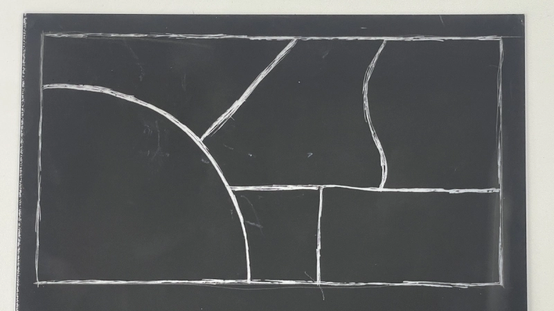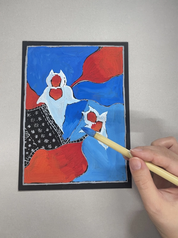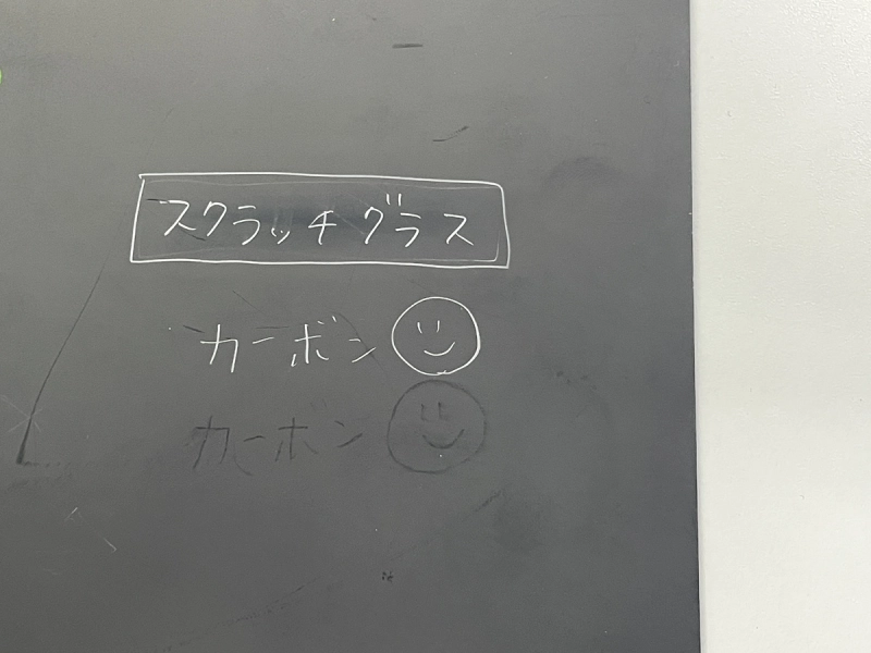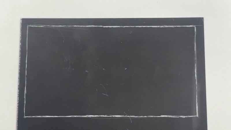 鉛筆で描くと下絵がよく見えますが、優しく書かないと黒い塗装がはがれてしまう(スクラッチしてしまう)ので注意しましょう。(誤ってはがれた場合は、黒い絵の具で修復可能です。)