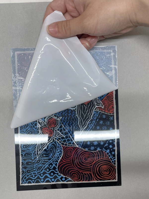 黒カーボン紙だと少し見えにくく、しっかり濃く転写をすると反射で見えるようにはなります。