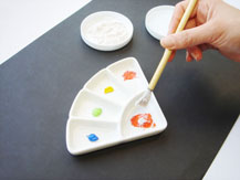版画を水彩絵具で刷る際、胡紛を混ぜると絵の具のノリが格段によくなります。 ①絵の具に胡紛を同分量混ぜます。このとき水は少なめにしてください。