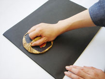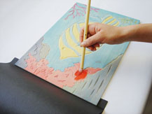 ②版に絵の具をのせ、通常の版画の要領で刷ります。