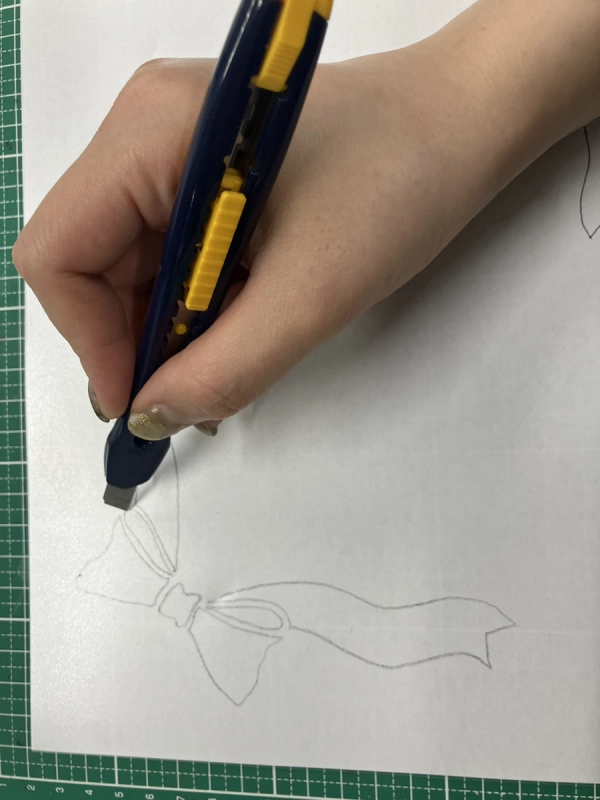 また、鉛筆で描いた面を下にして、シートを切ったほうが、鉛筆の線と手がこすれるのを防いで作業ができるのでおすすめです★