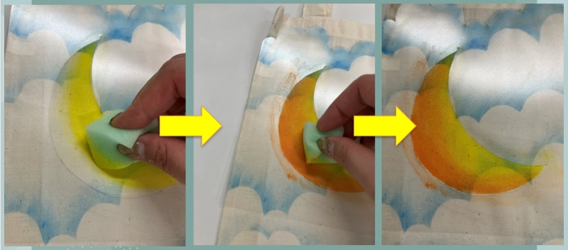 布用ステンシルに入っている、布用絵の具は完全乾燥後でアイロンなしでも洗濯が可能です♪