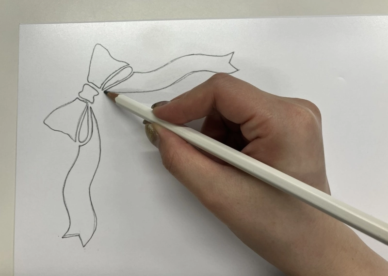 このまま、下絵用紙の上にステンシルシートを置き、えんぴつで上からなぞっていきます!