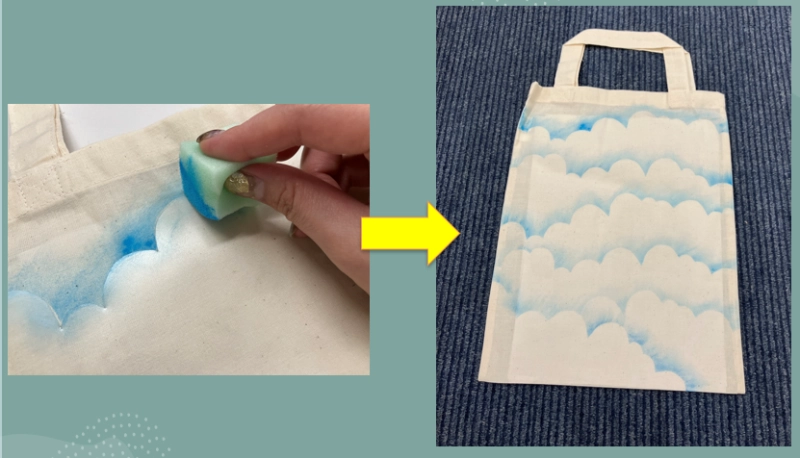 布製品に着色するのであれば絵の具をつけすぎて反対側まで染みてしまう子がいるため、