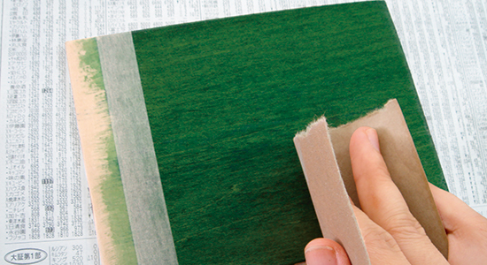 塗膜研磨(とまくけんま) 塗り重ねるときは、400番くらいのサンドペーパーで軽く研磨します。 ↓
