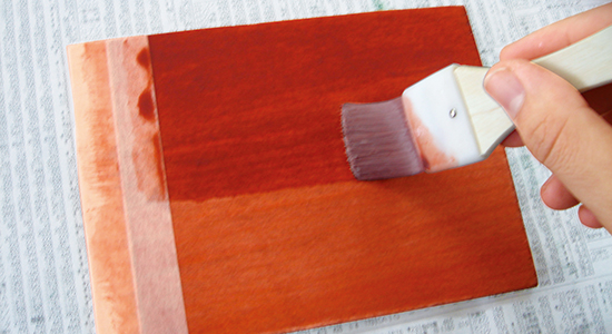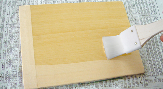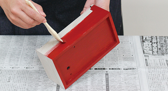 一回目の塗装 水性工芸うるしを刷毛で塗ります。塗り終わったら、しっかり乾かします。 ↓