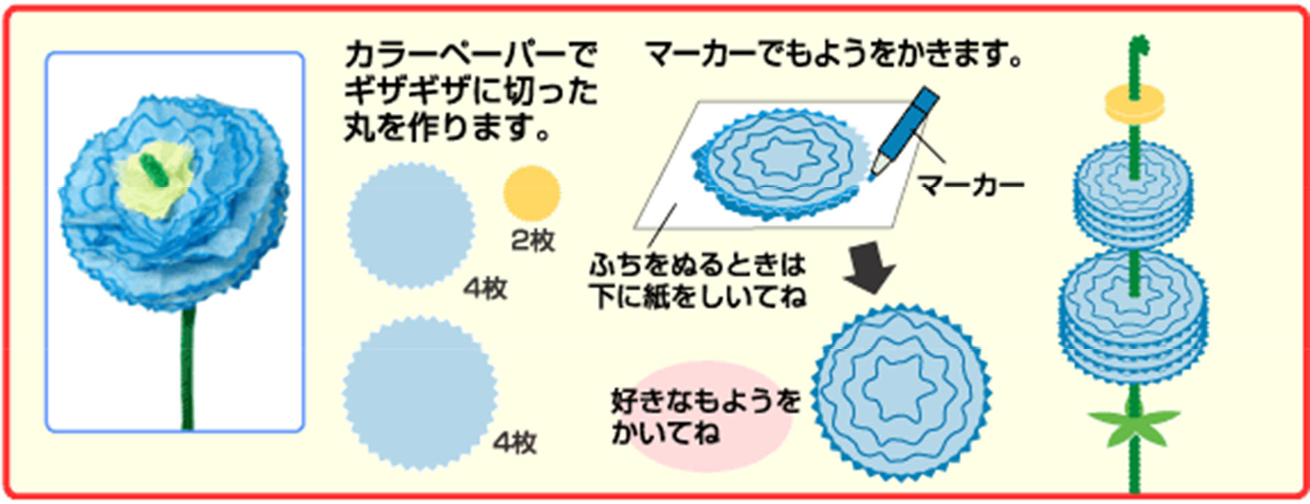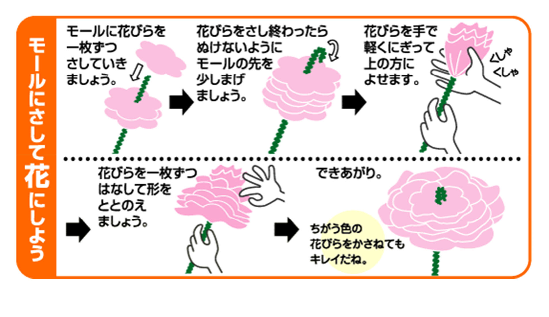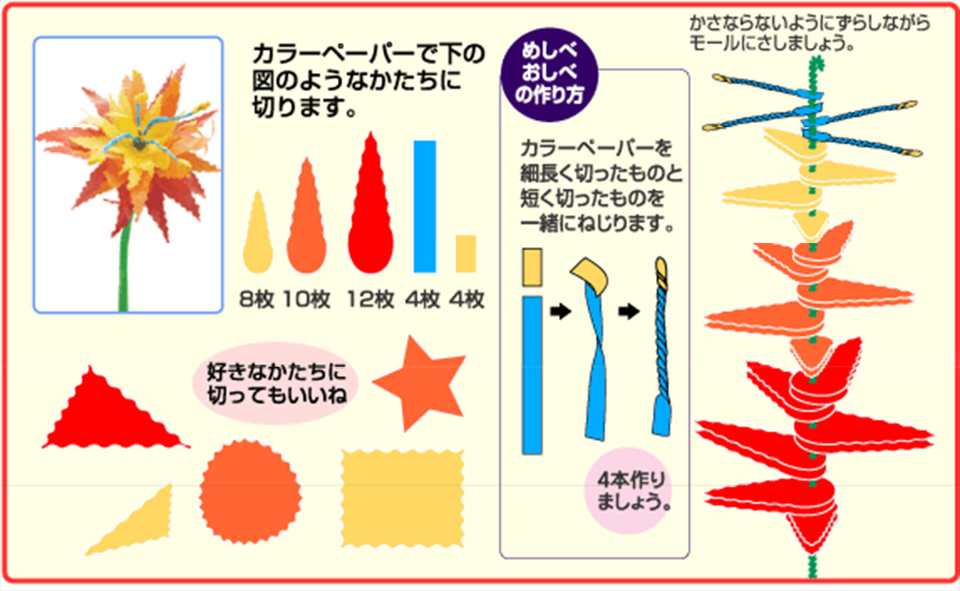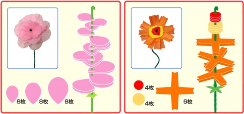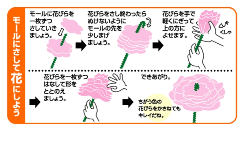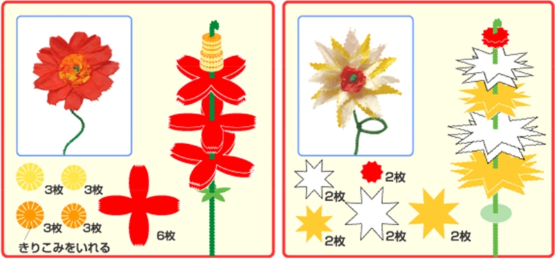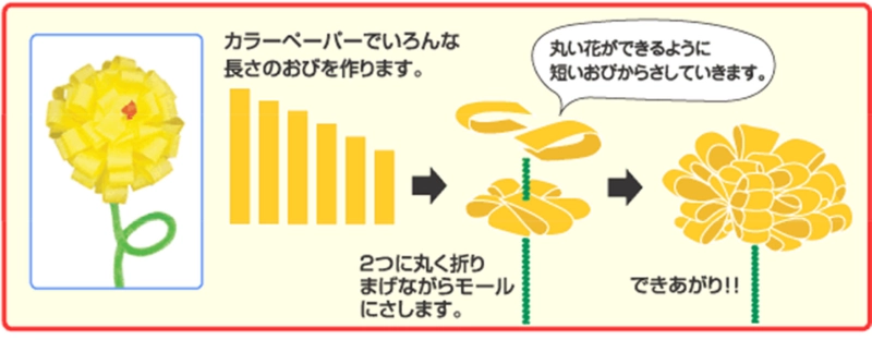 カラーペーパーを使えば、簡単に立体的なお花が作れます! 挑戦してみよう!