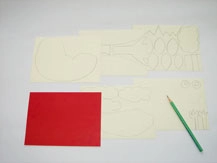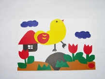 ①カラータックを好きな形に切って貼り絵を作ります。