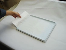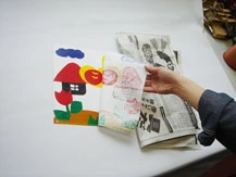 ②和紙を水に浸け、新聞紙で余分な水分を除いておきます。