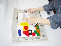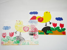 水で湿らした和紙にカラータックの色を 転写する版画です。低学年の児童にも 手軽にできます。