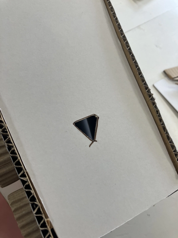 固い段ボールの板で丸い形を表現するのは難しいですが