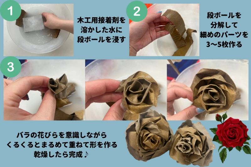 段ボールとボンド水でバラを作ってみよう!