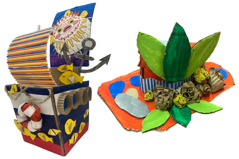 カラー段ボールを使うと、カラフルでかわいい作品も作れます!