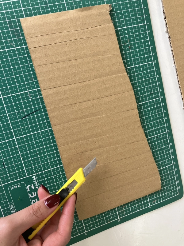 段ボールは段ボールの目に沿って、中芯と平行にカットすると切りやすいです。