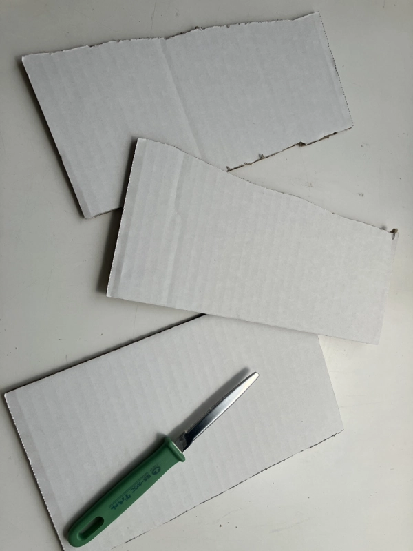 段ボールの目に沿って(中芯と平行)折り筋を入れます。