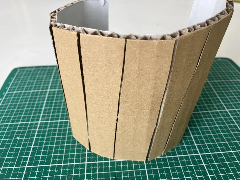 すると、写真の丸みのある段ボールの板が完成します!