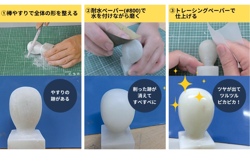 クラフテリオの印材セットなら、耐水ペーパーと、トレーシングペーパー(艶出し用)付でしっかりと磨けてツルツルの表面が作れます!