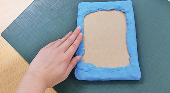 ベースを作る。板の裏まで粘土を巻き付けるのがポイントです!