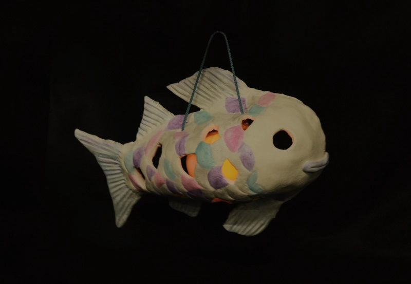 光が見えるように鱗の一部や目の部分をはカッターでくり抜きます。