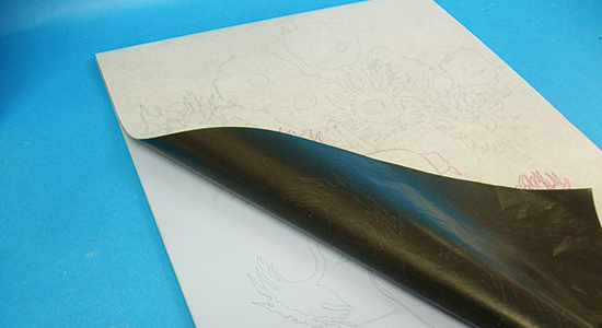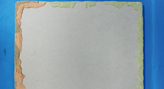 ヘラを使いながら板にはると型押しができる。油絵のようなタッチに仕上がる。 線の表現