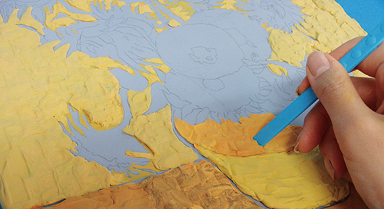 Gクレイの貼り絵でゴッホの「ひまわり」を作ろう!