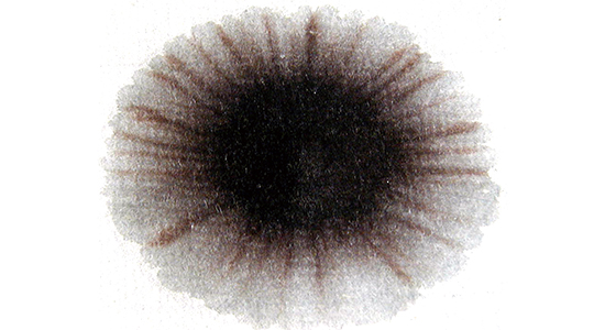 傘模様のバリエーション 周りに点を打って、水でにじませるとこのような模様になる。