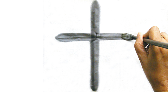 水墨画の技法 立体交差の手順②